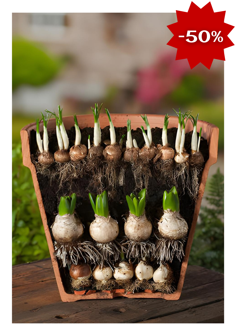 Квіткова лазанья — це набір цибулин квітів з спеціально виведеними різними термінами цвітіння у горщиках або контейнерах, висаджених в кілька шарів. Завдяки цьому методу, ваше підвіконня буде радувати вас квітами протягом всієї зими. Це ідеальне рішення для створення безперервного цвітіння, особливо в холодну пору року, коли так не вистачає яскравих фарб.